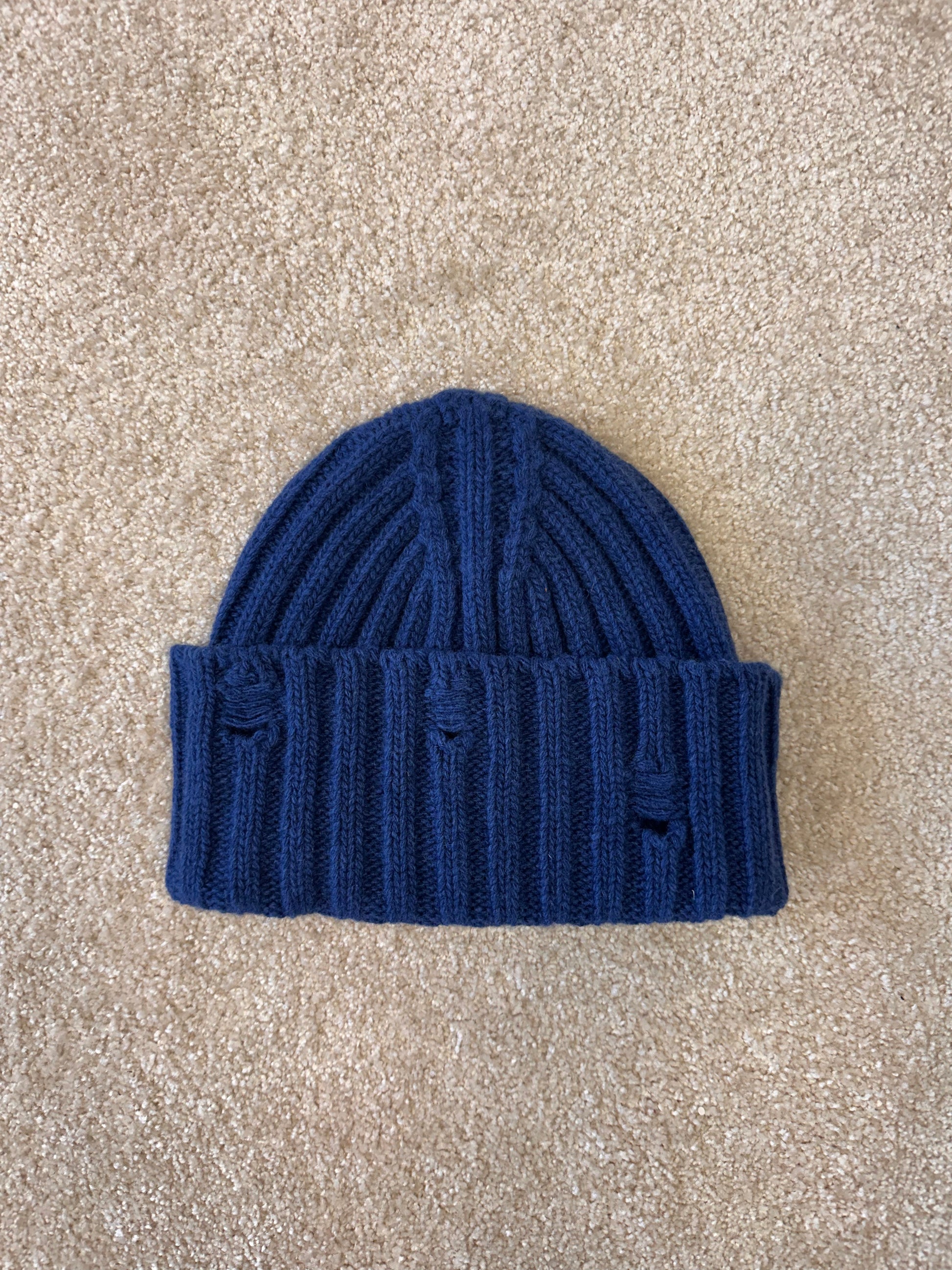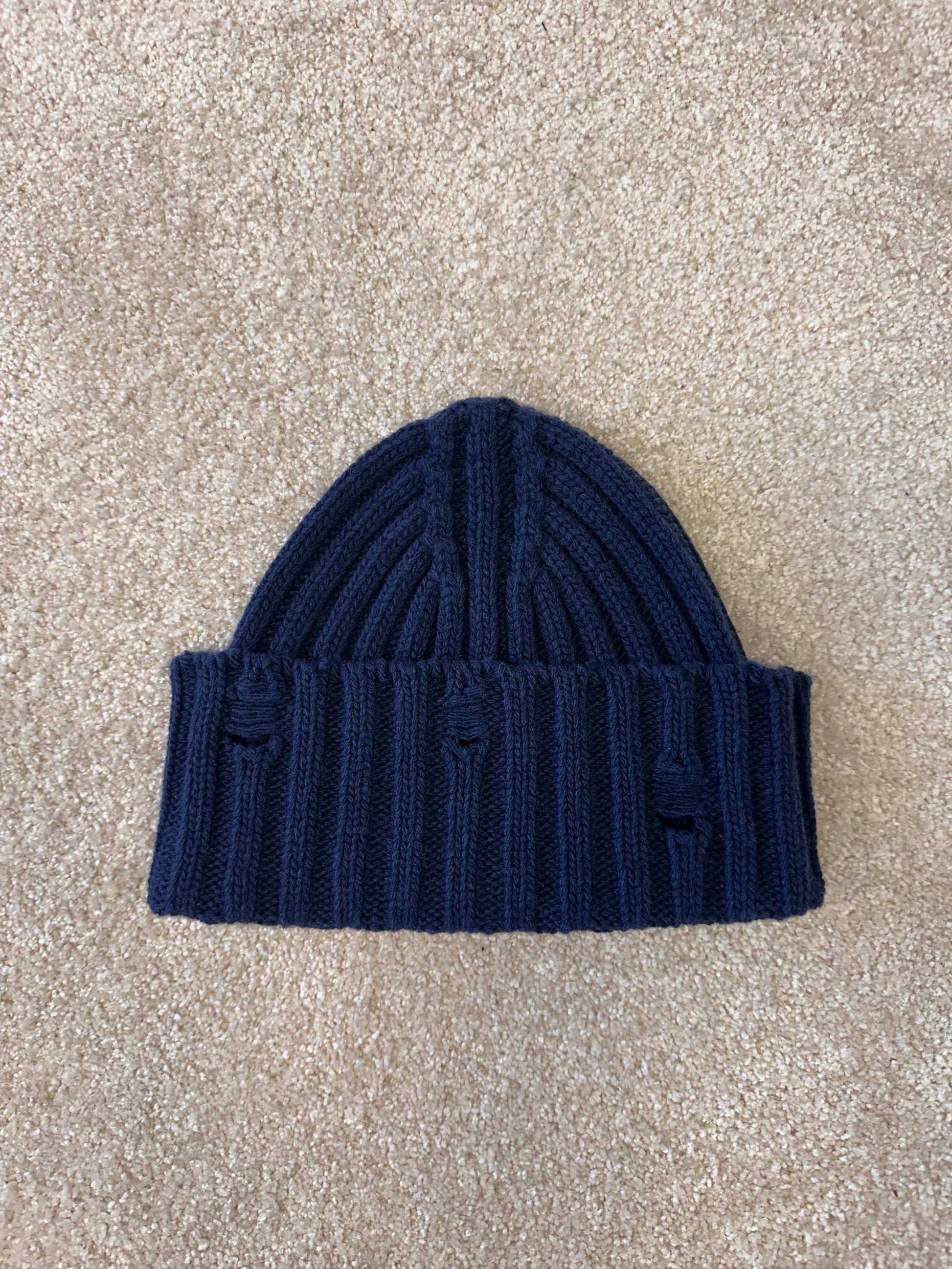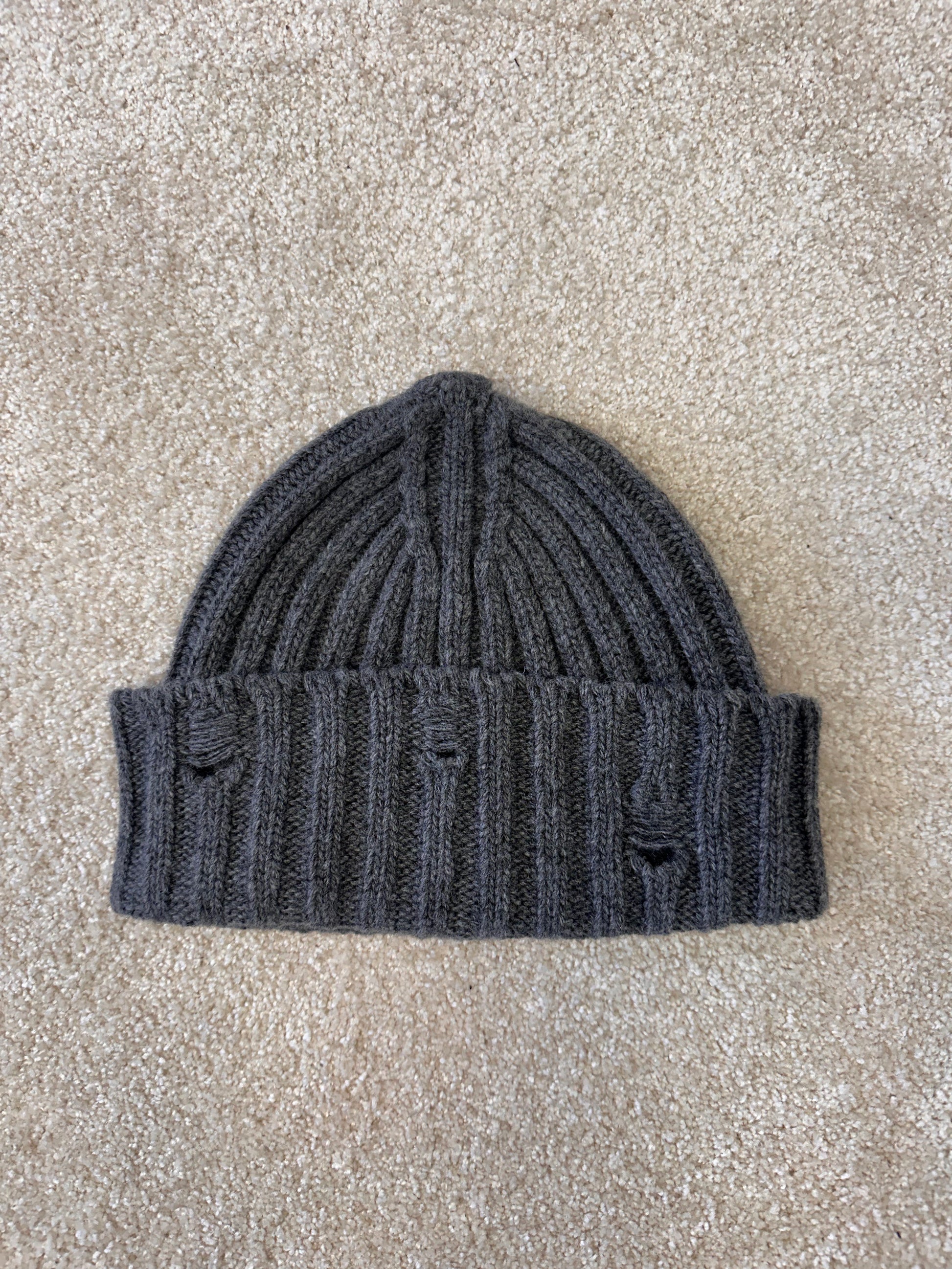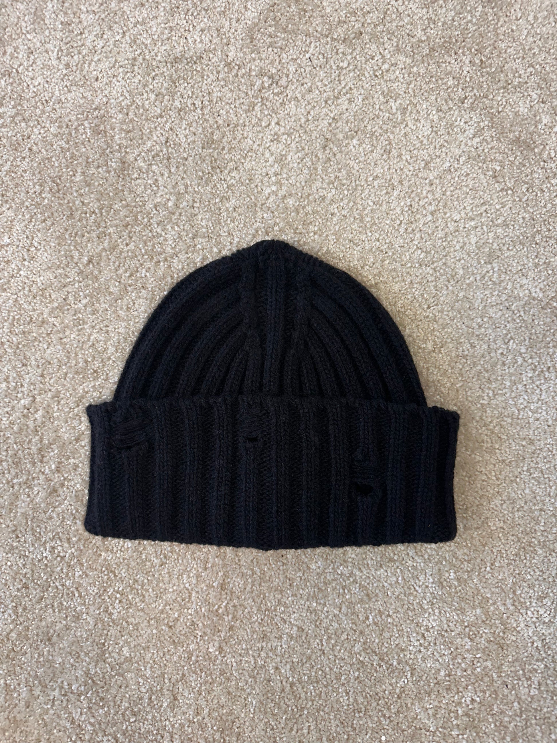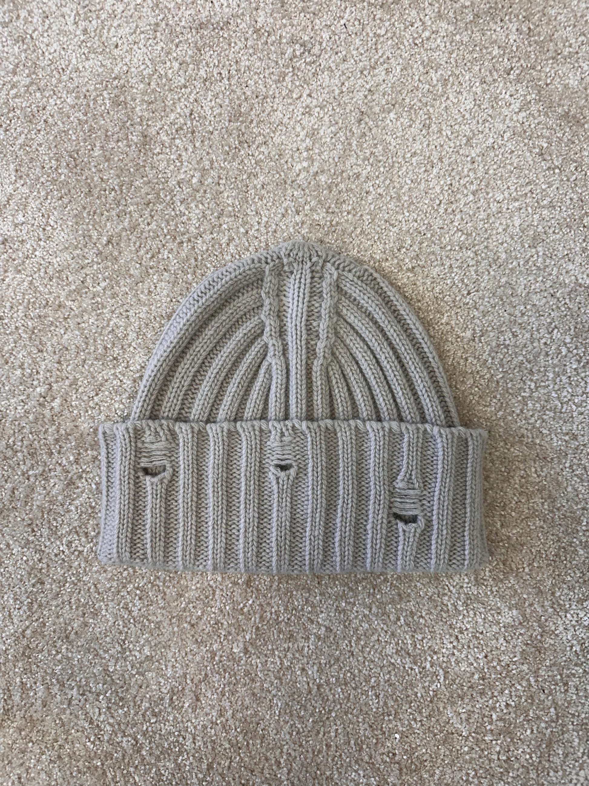 Knitted beanie hat with holes