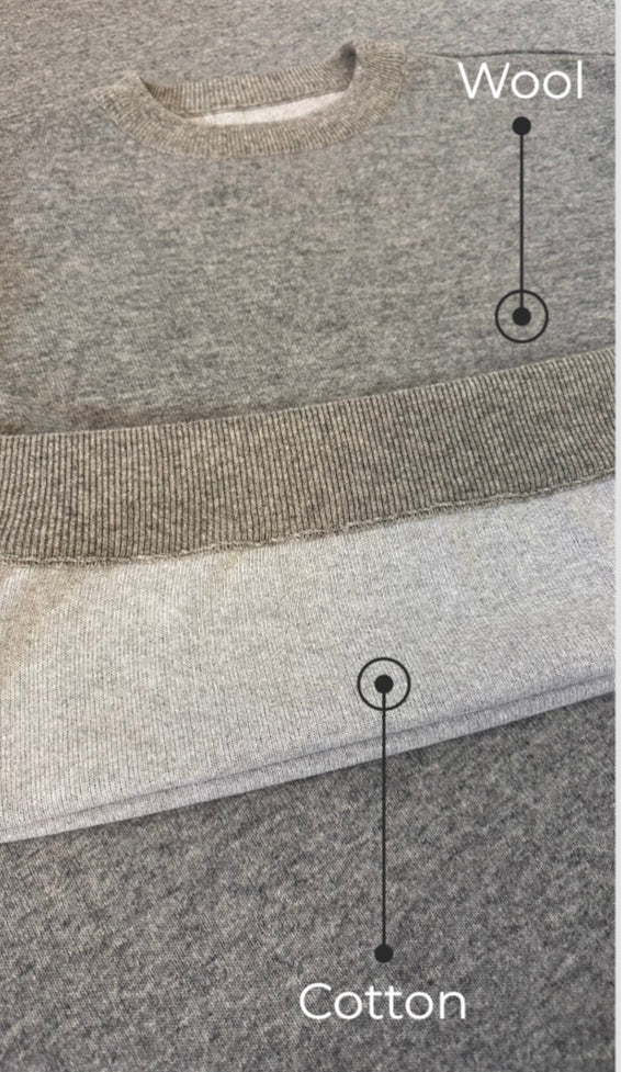 A Premium Wool Cotton activewear. Double sided knit. Outside knit-wool, inside knit-Cotton