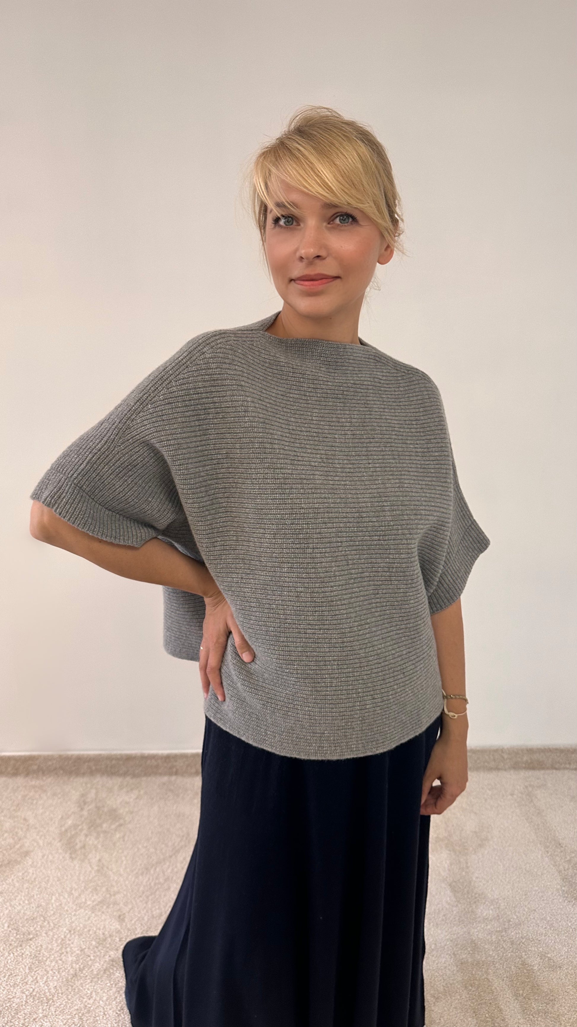 Elegant Women's knitted sweater with short sleeve
